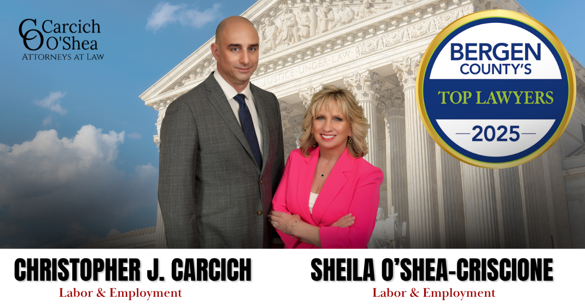 Carcich O’Shea is proud to announce that Partners Christopher J. Carcich, Esq. and Sheila O’Shea‑Criscione, Esq. have again been recognized among Bergen County’s Top Lawyers for 2025 by Bergen Magazine.